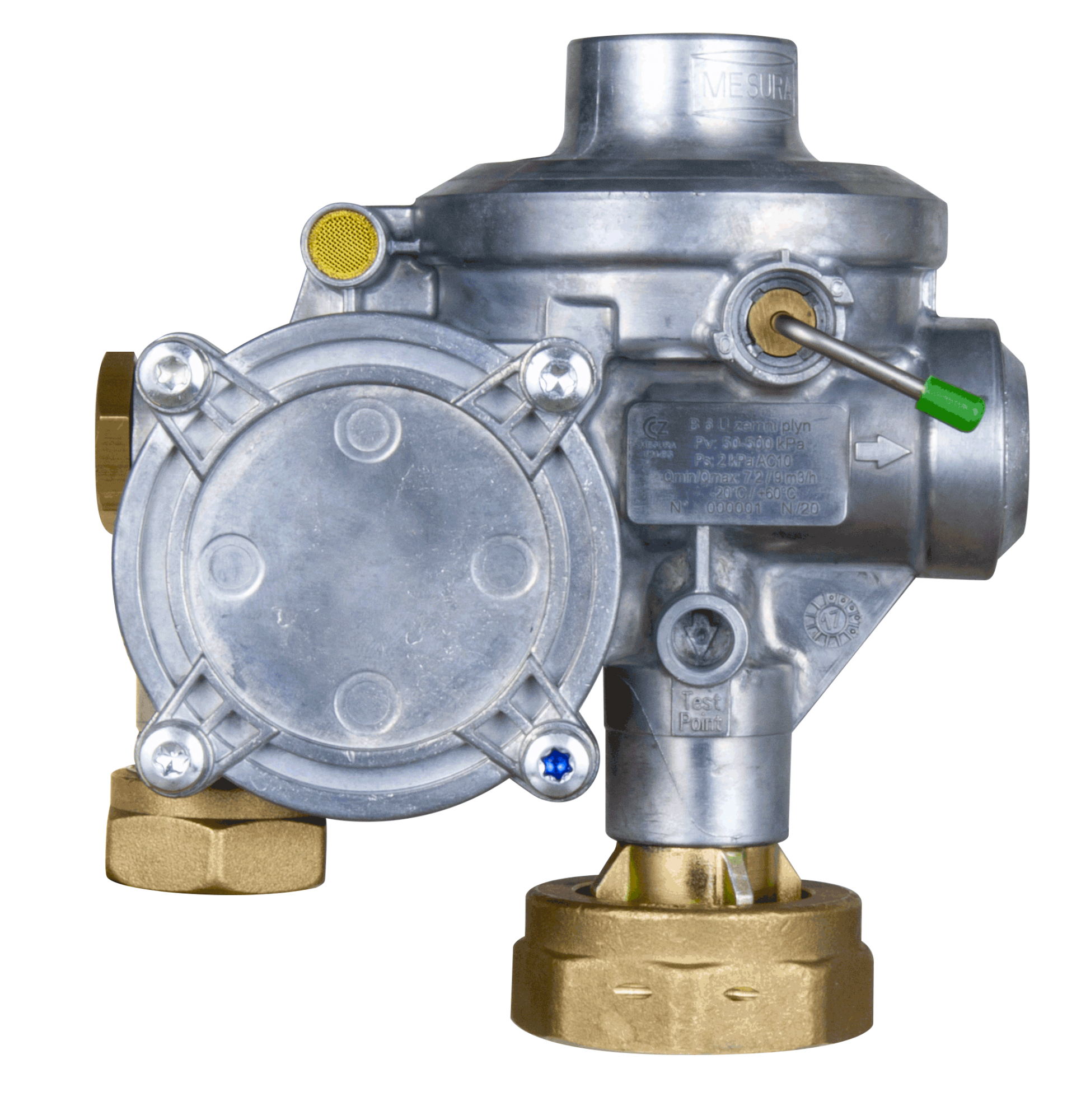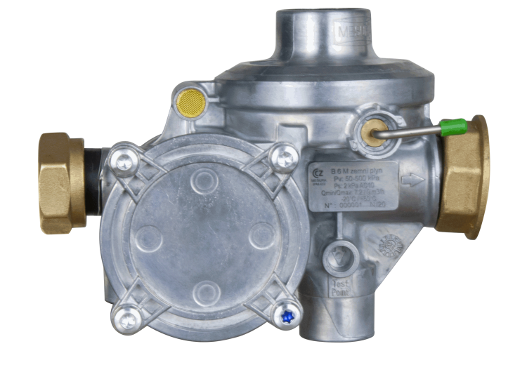 - Regulátor včetně přetlakového uzávěru, podtlakového uzávěru a bezpečnostního ventilu (všechna tři zabezpečení jsou volitelná)